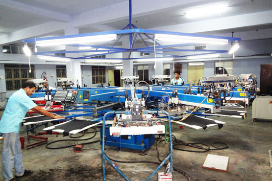 Chest Printing Machines with 10,000 pieces a day. To print upto 12 colours chest printing with Non PVC also. All type of Prints Like Plastisol prints, Foil prints, Flock prints, High density prints, Gel prints, Matt prints are made inhouse which gives the Value addition in the garments.
